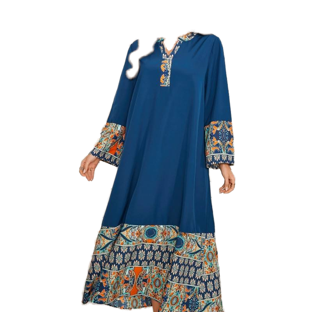 فستان طويل مستوحى من دبي بتصميم زهور ربيعية للنساء بأكمام طويلة وعباية بحافة واسعة مصنوعة من البوليستر