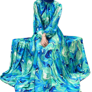 الأزهار العربية دبي طباعة فستان متواضع عباية رداء للنساء أنيقة البوليستر الحجاب الملابس مع البرقع لفصل الصيف والخريف